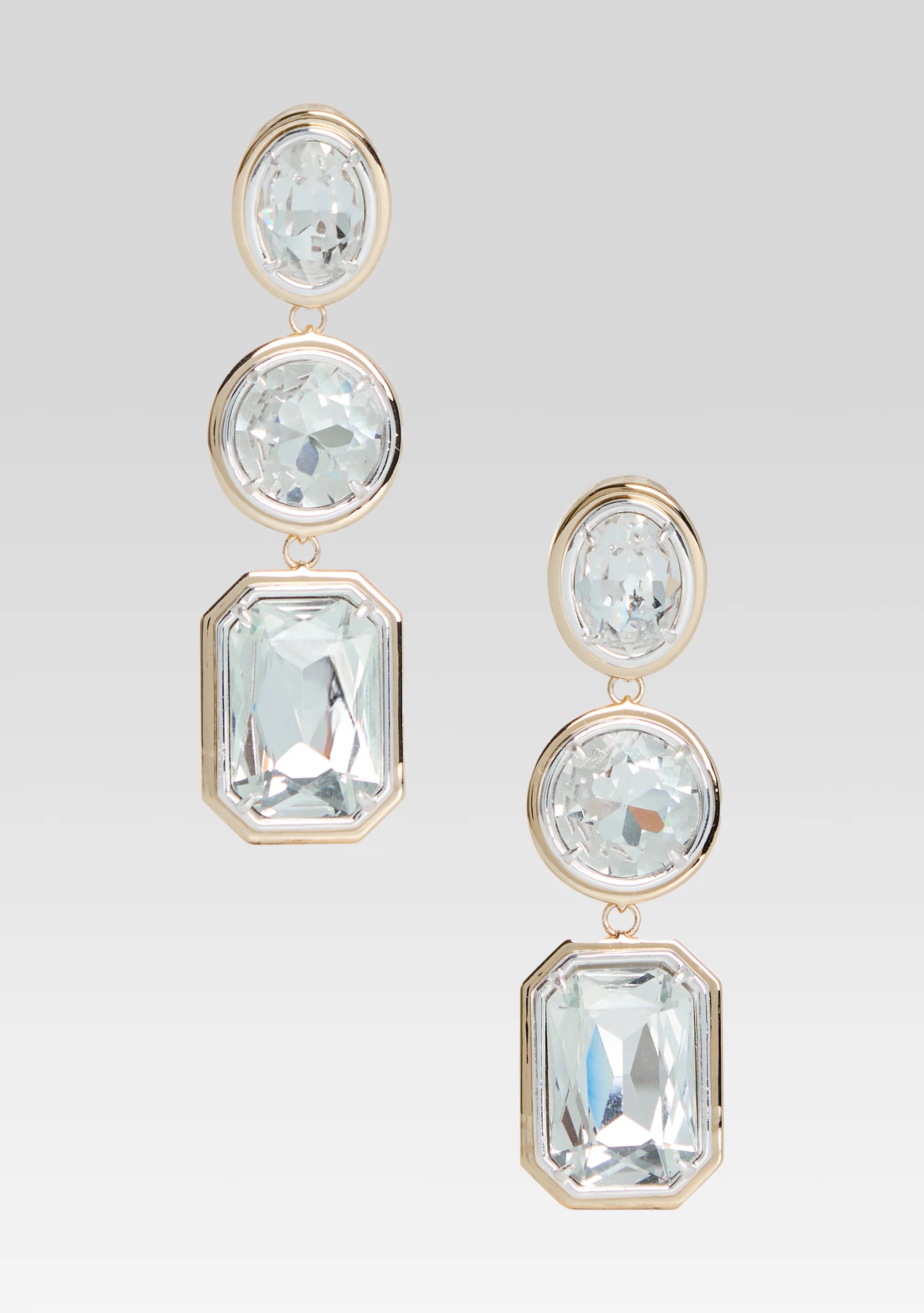 Indulge in the ultimate luxury with our Camille Gemstone Drop Earrings. These stunning earrings feature large crystal drops that catch the light with every movement, and are accentuated by delicate gold detailing. Add a touch of elegance to any outfit with these exclusive and sophisticated earrings.