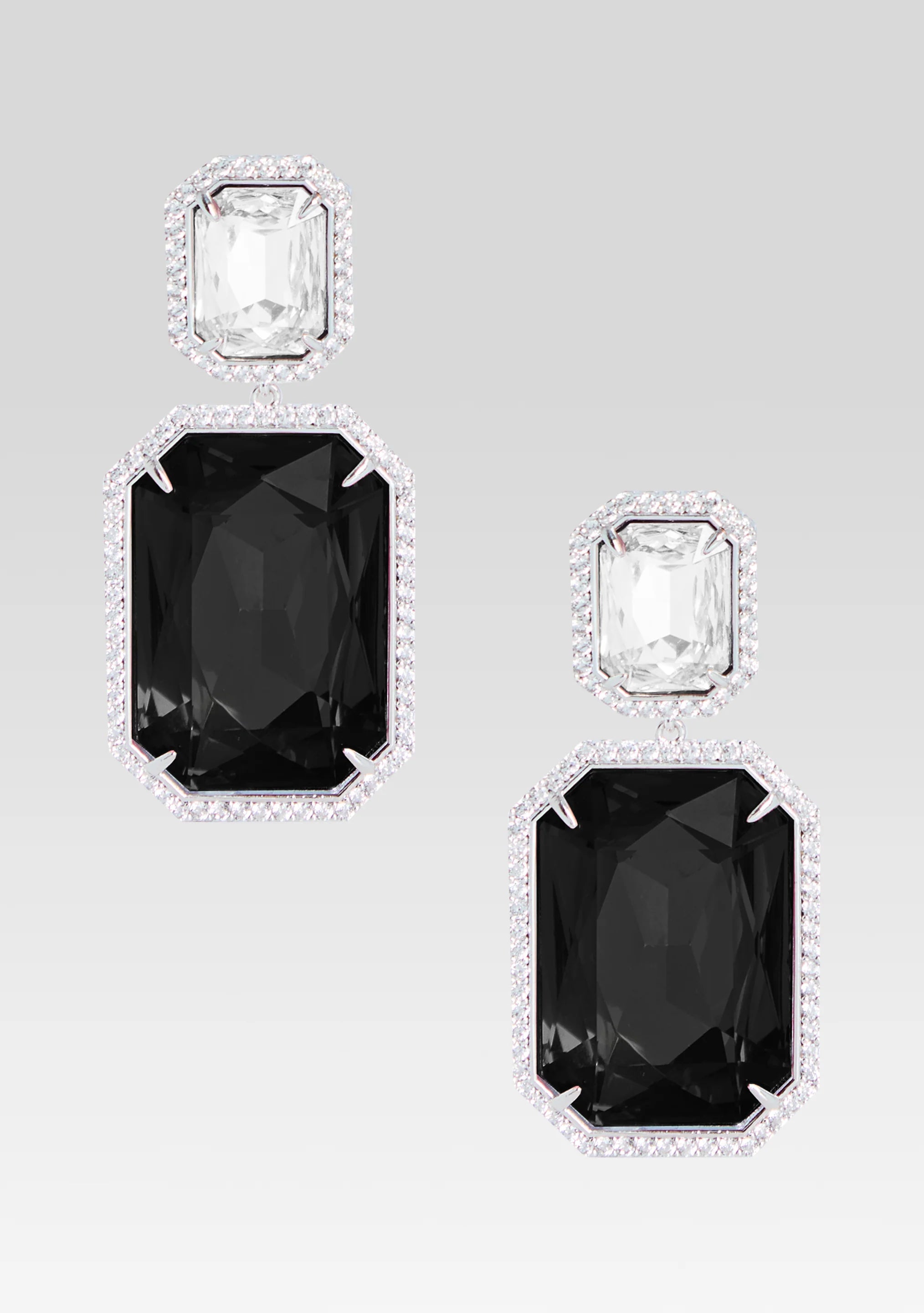 Add a touch of luxury to your special occasion outfit with the Cora Gemstone Earrings. These stunning earrings feature large black gemstones embellished with silver accents. Elevate your look with these sophisticated and exclusive earrings.